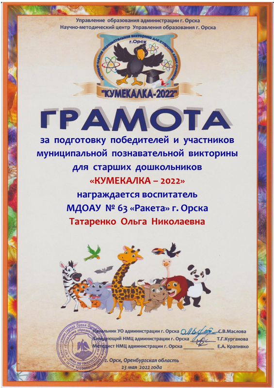 Муниципальная познавательная викторина для старших дошкольников "Кумекалка - 2022"